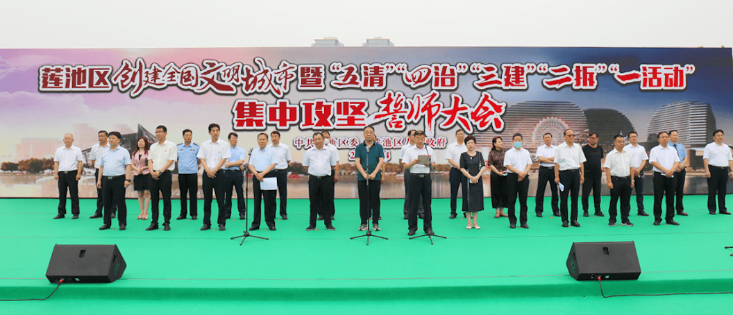 會(huì)議由區(qū)委副書(shū)記、區(qū)長(zhǎng)、區(qū)創(chuàng)城工作指揮部指揮長(zhǎng)劉曉鵬主持;區(qū)委黨委、宣傳部長(zhǎng)、區(qū)創(chuàng)城工作指揮部副指揮長(zhǎng)兼創(chuàng)城辦主任羅曉瑞向參會(huì)人員簡(jiǎn)要通報(bào)了蓮池區(qū)創(chuàng)城工作進(jìn)展情況并對(duì)下一步工作進(jìn)行了安排;區(qū)委副書(shū)記、區(qū)創(chuàng)城工作指揮部常務(wù)副指揮長(zhǎng)高國(guó)華宣讀了《保定市蓮池區(qū)開(kāi)展“五清”“四治”“三建”“兩拆”“一活動(dòng)”集中攻堅(jiān)行動(dòng) 推動(dòng)“三整治五提升”文明城市創(chuàng)建實(shí)施方案》;區(qū)委書(shū)記、區(qū)創(chuàng)城工作指揮部政委董鳴鏑介紹了我市目前創(chuàng)城工作的開(kāi)展情況,對(duì)本次行動(dòng)要求作了具體闡述,并提出了更高的要求,希望全區(qū)上下團(tuán)結(jié)一心,進(jìn)一步弘揚(yáng)“三有四干”的蓮池精神和“徹夜鏖戰(zhàn)、日夜兼程、晨起而作、只爭(zhēng)朝夕”的蓮池作風(fēng),共同為我市創(chuàng)建全國(guó)文明城市工作貢獻(xiàn)力量。