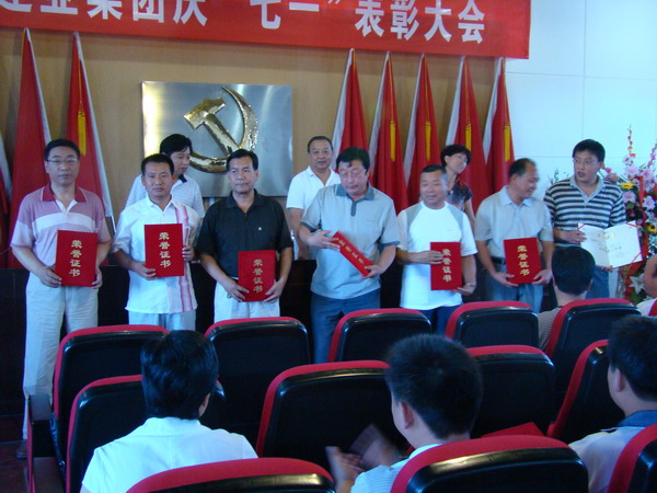 為迎接建黨八十八周年, 2009年6月29日上午,集團(tuán)公司黨委在六樓大會議室舉行了隆重的慶“七一”表彰大會,對在過去的一年中,集團(tuán)公司各方面工作中涌現(xiàn)出來的先進(jìn)黨支部、優(yōu)秀共產(chǎn)黨員、優(yōu)秀黨務(wù)工作者進(jìn)行了表彰。