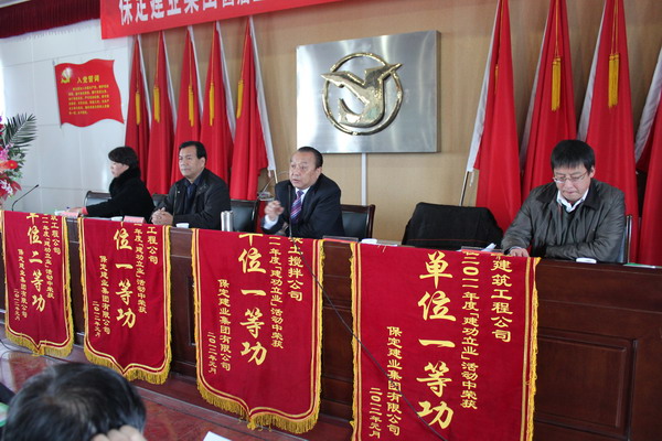 在隨后舉行的二零一一年度集團(tuán)表彰大會(huì)上,由黨委副書記閆雙彥宣讀了“二零一一年度建功立業(yè)表彰決定”,并由集團(tuán)公司領(lǐng)導(dǎo)對(duì)獲獎(jiǎng)單位頒發(fā)了錦旗和獎(jiǎng)狀。