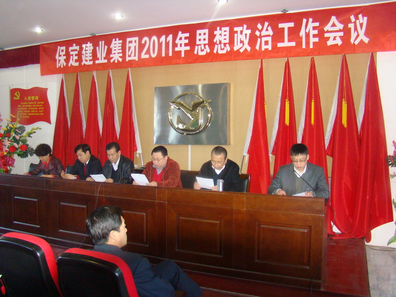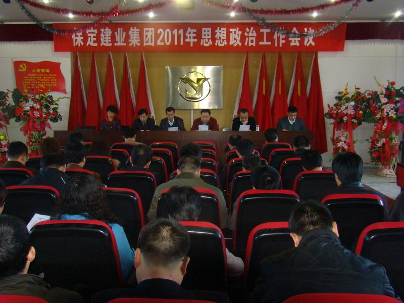 2011年3月8日,保定建業(yè)集團(tuán)有限公司2011年思想政治工作會(huì)議在莊嚴(yán)的國歌聲中拉開了序幕,會(huì)議由黨委辦公室主任馬亞軍主持,集團(tuán)各公司黨、政、工、團(tuán)、婦、武裝、保衛(wèi)負(fù)責(zé)人參加會(huì)議。